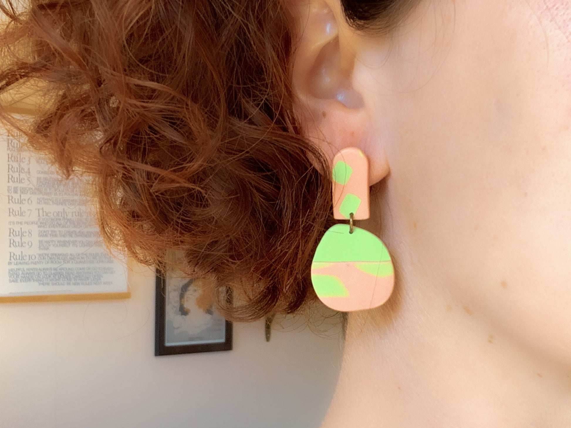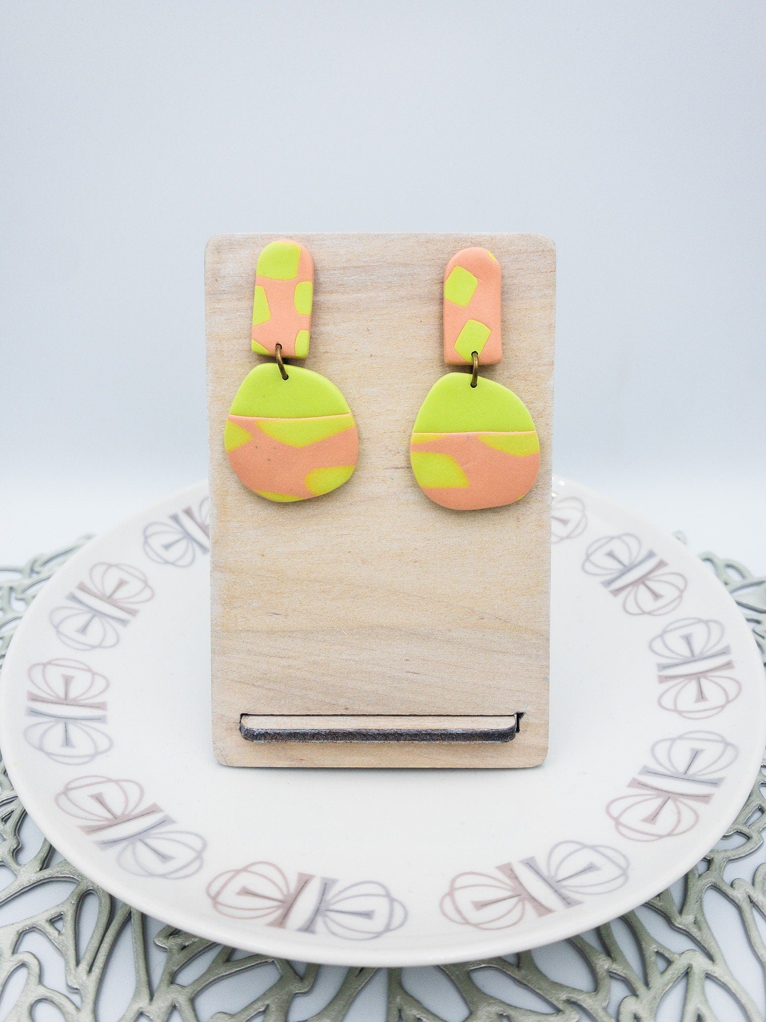 Funky Polymer Clay Dangle Earrings: Neon Pink & Lime Green