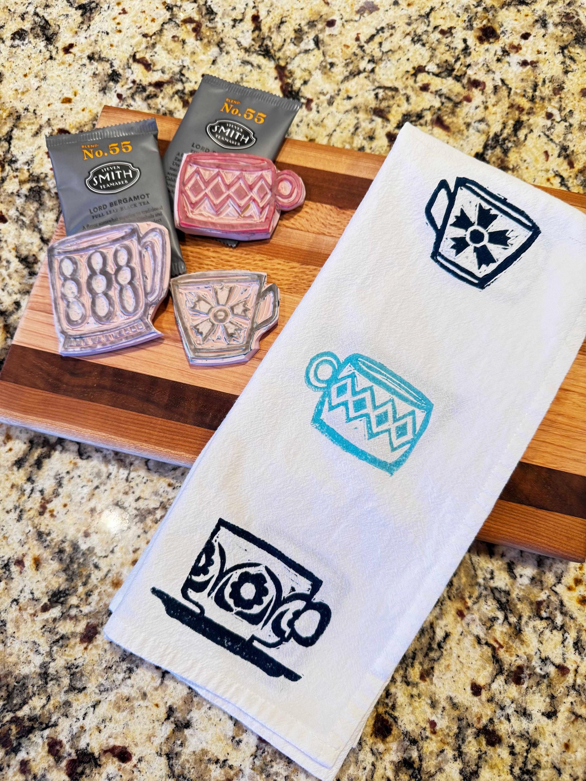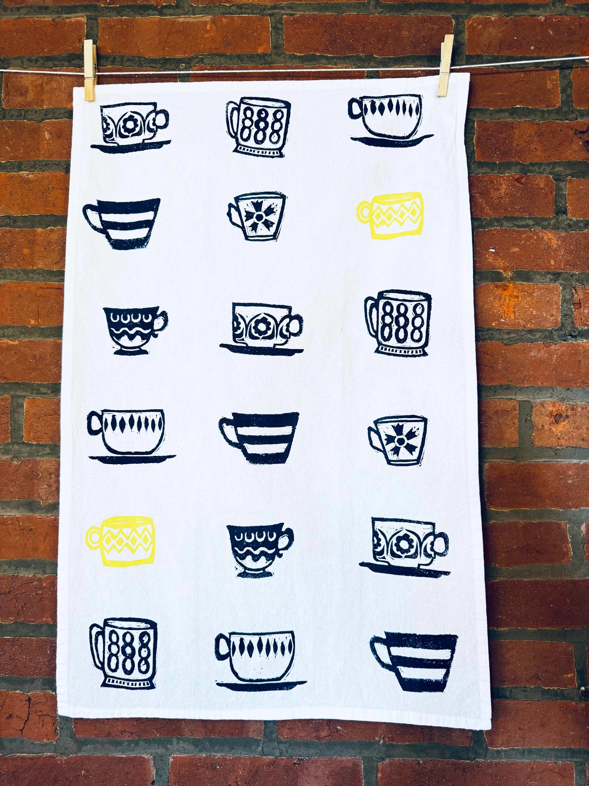 Hand Printed Tea Cup Tea Towel – Mid-Century Modern Kitchen Decor