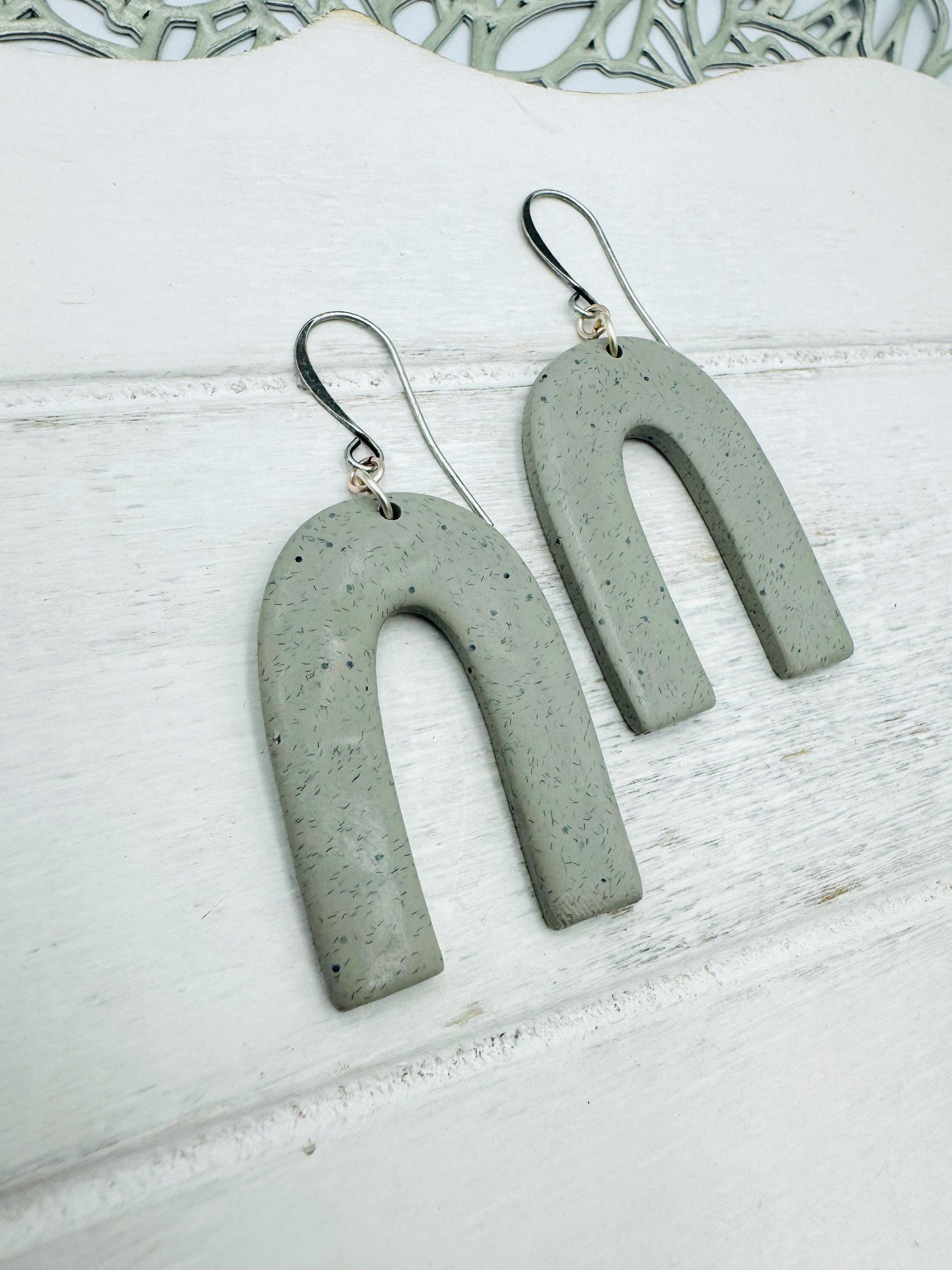 Modern Gray Arch Earrings: Lightweight Polymer Clay Dangles